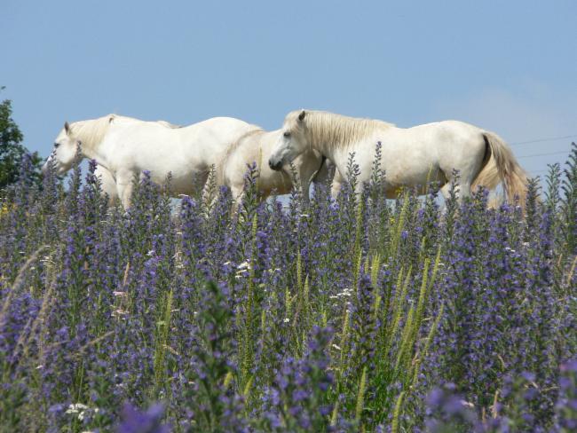 genügsamen Camargue-Pferde kommen mit Brachflächen bestens zurecht und verhindern